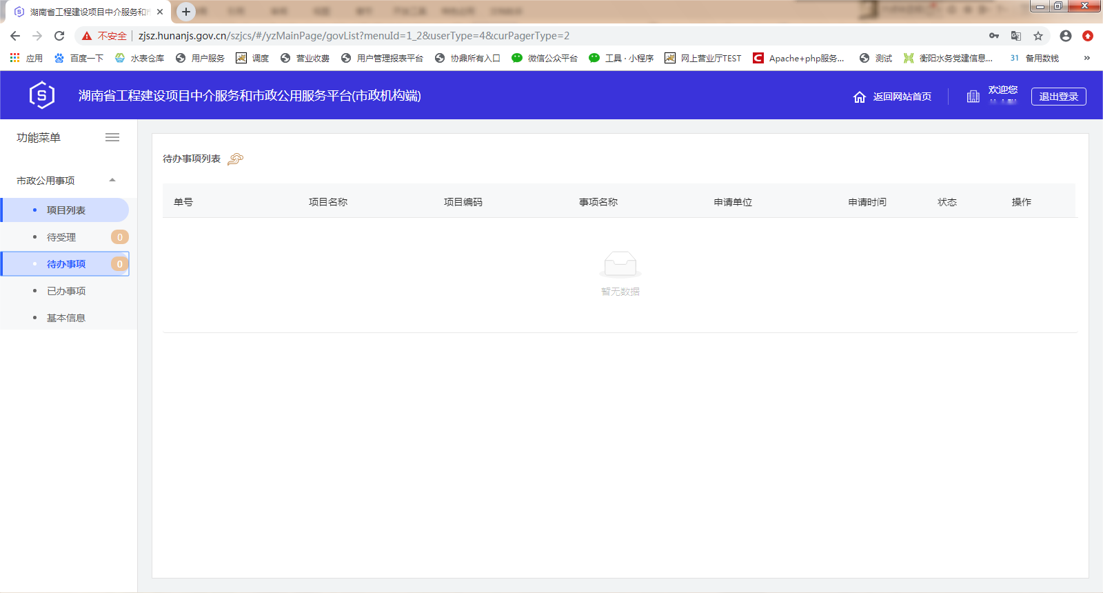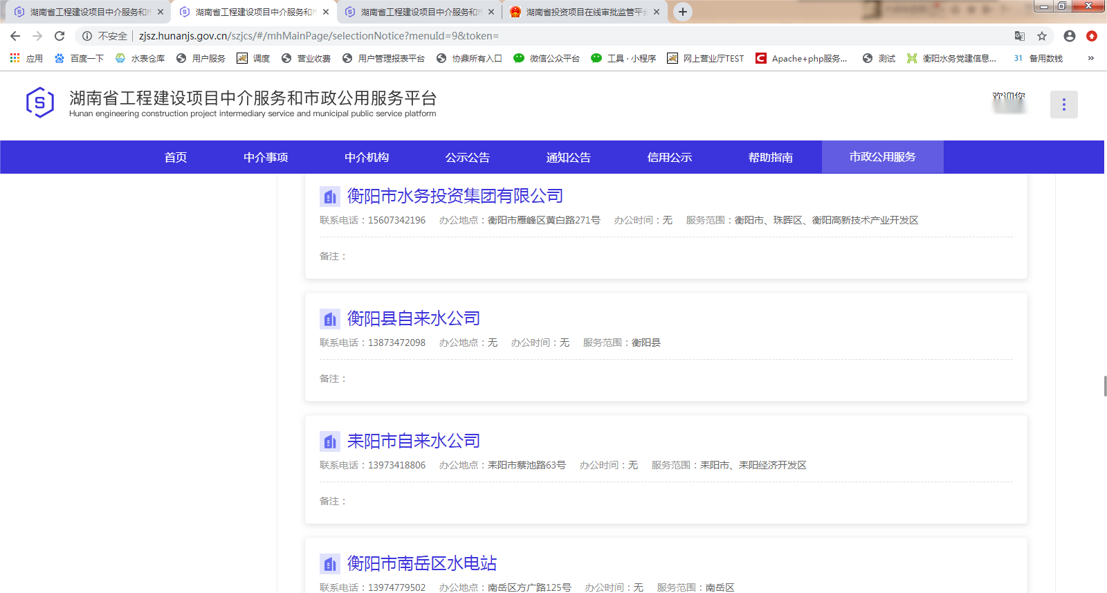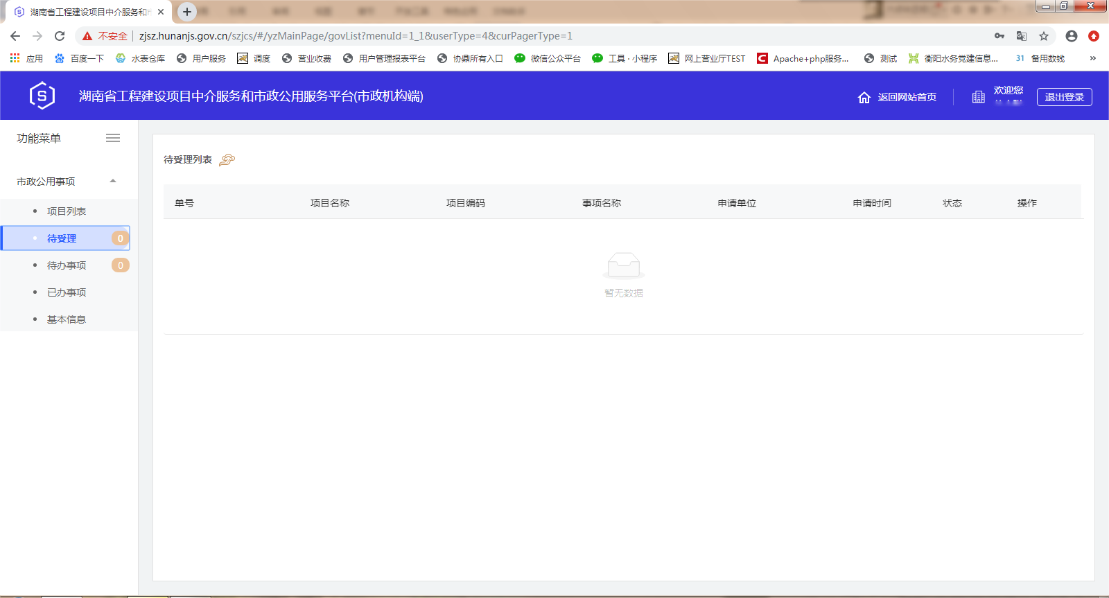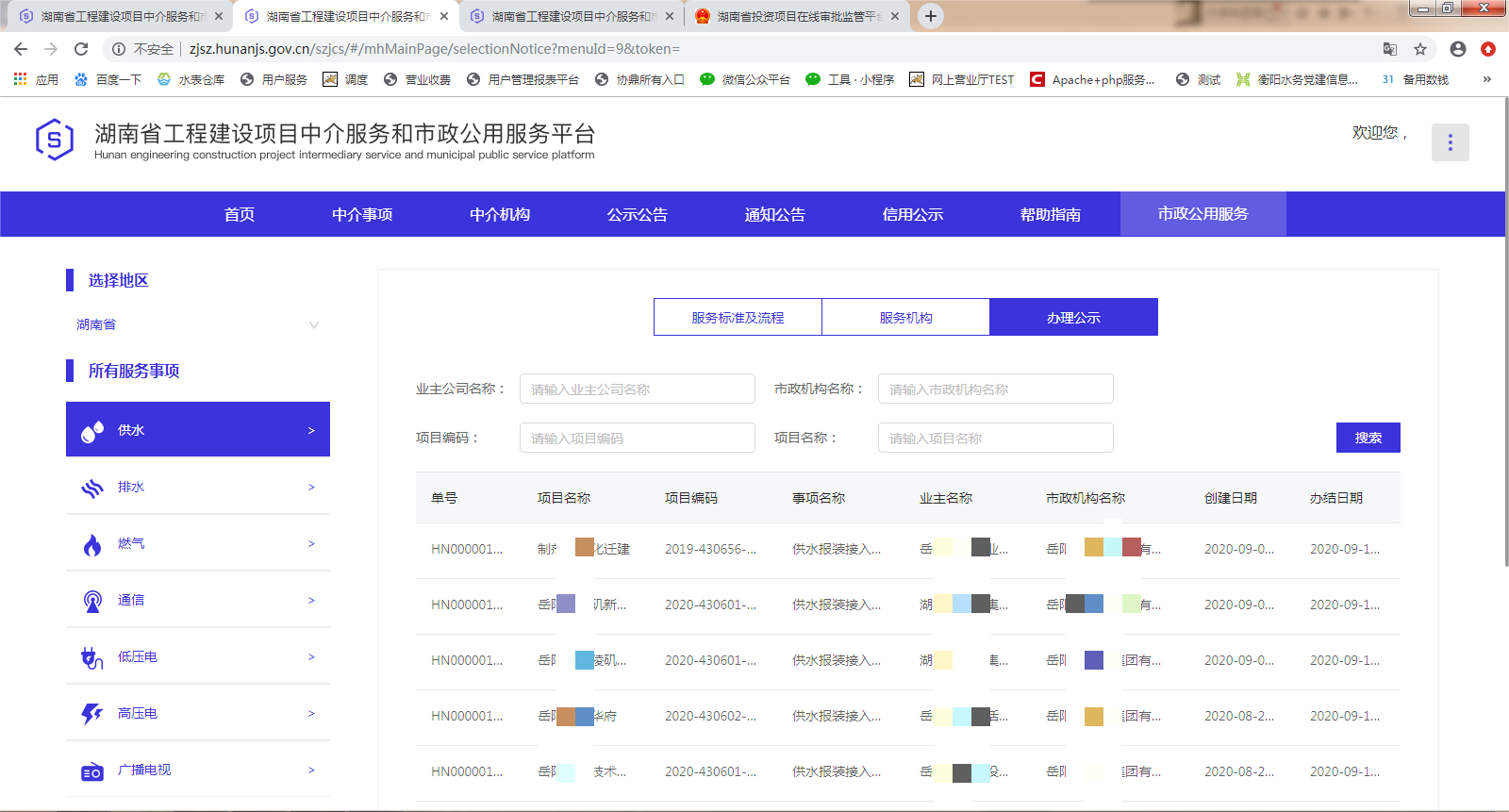 三、湖南省工程建设项目中介服务和市政公用服务平台(市政机构端)操作界面