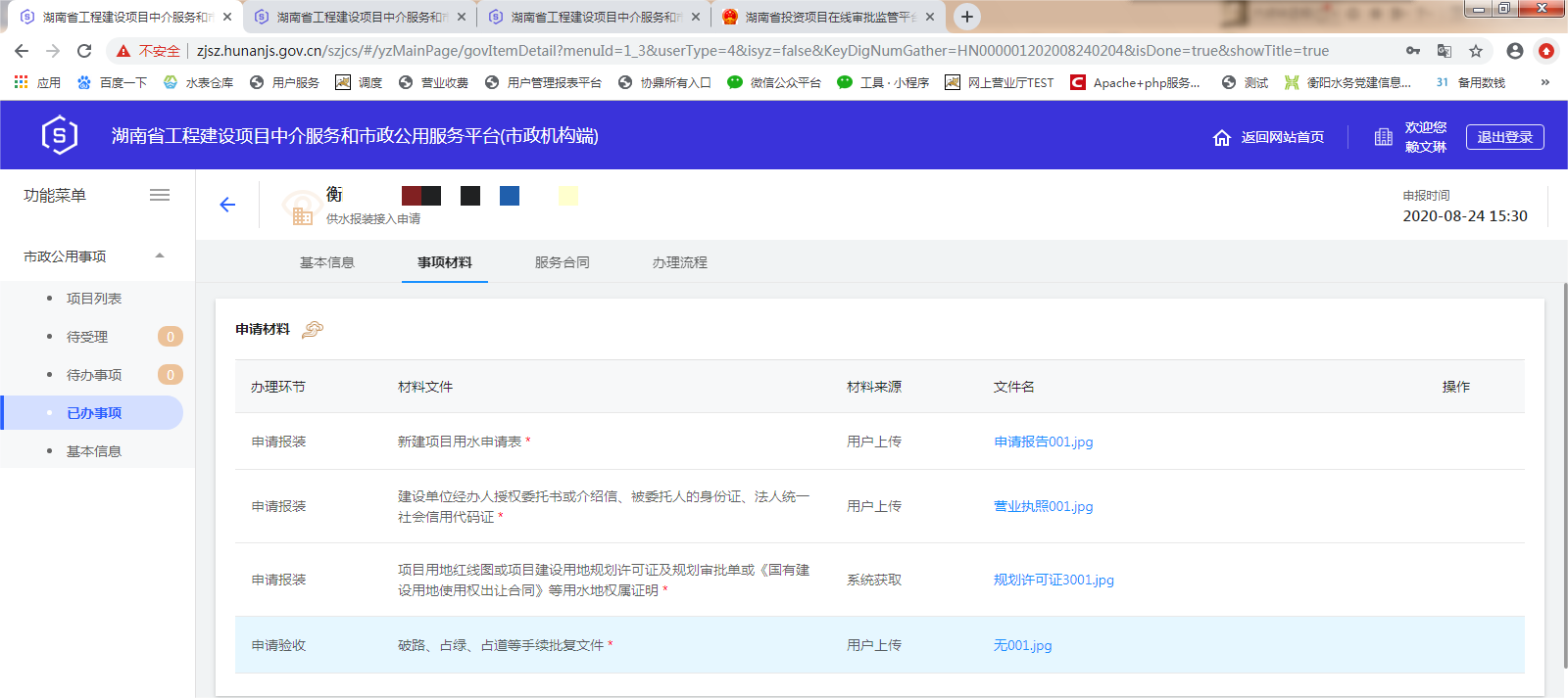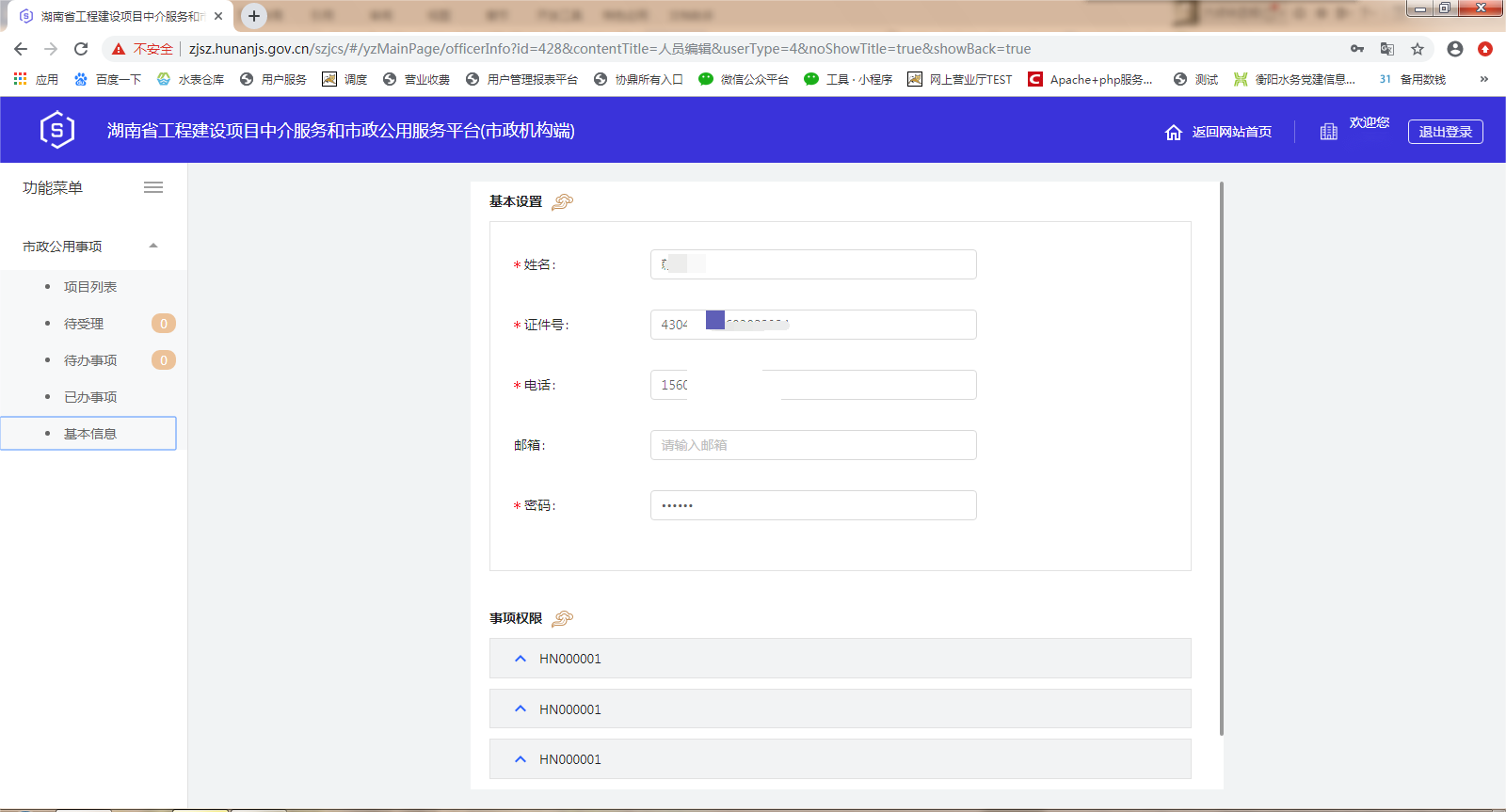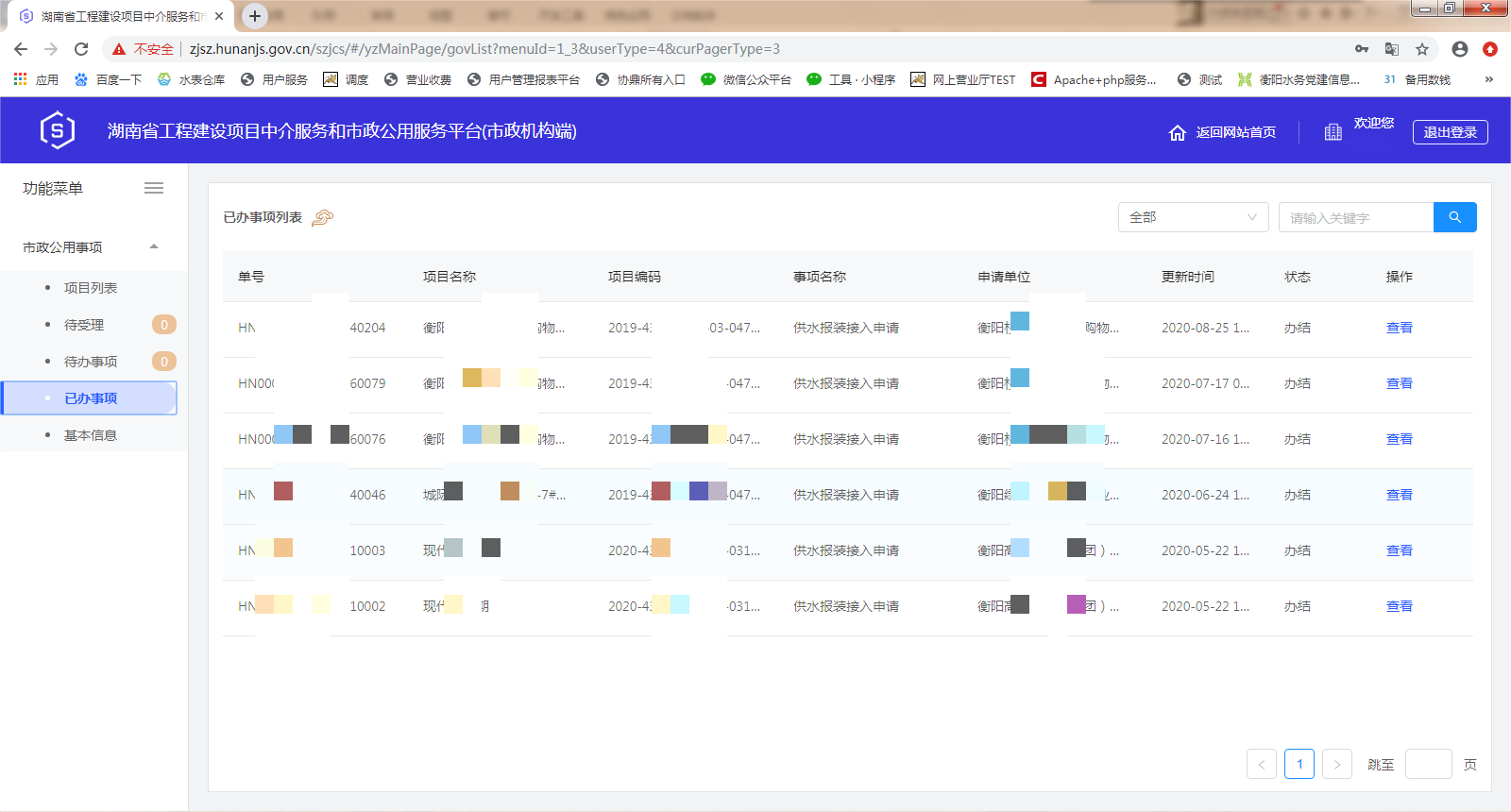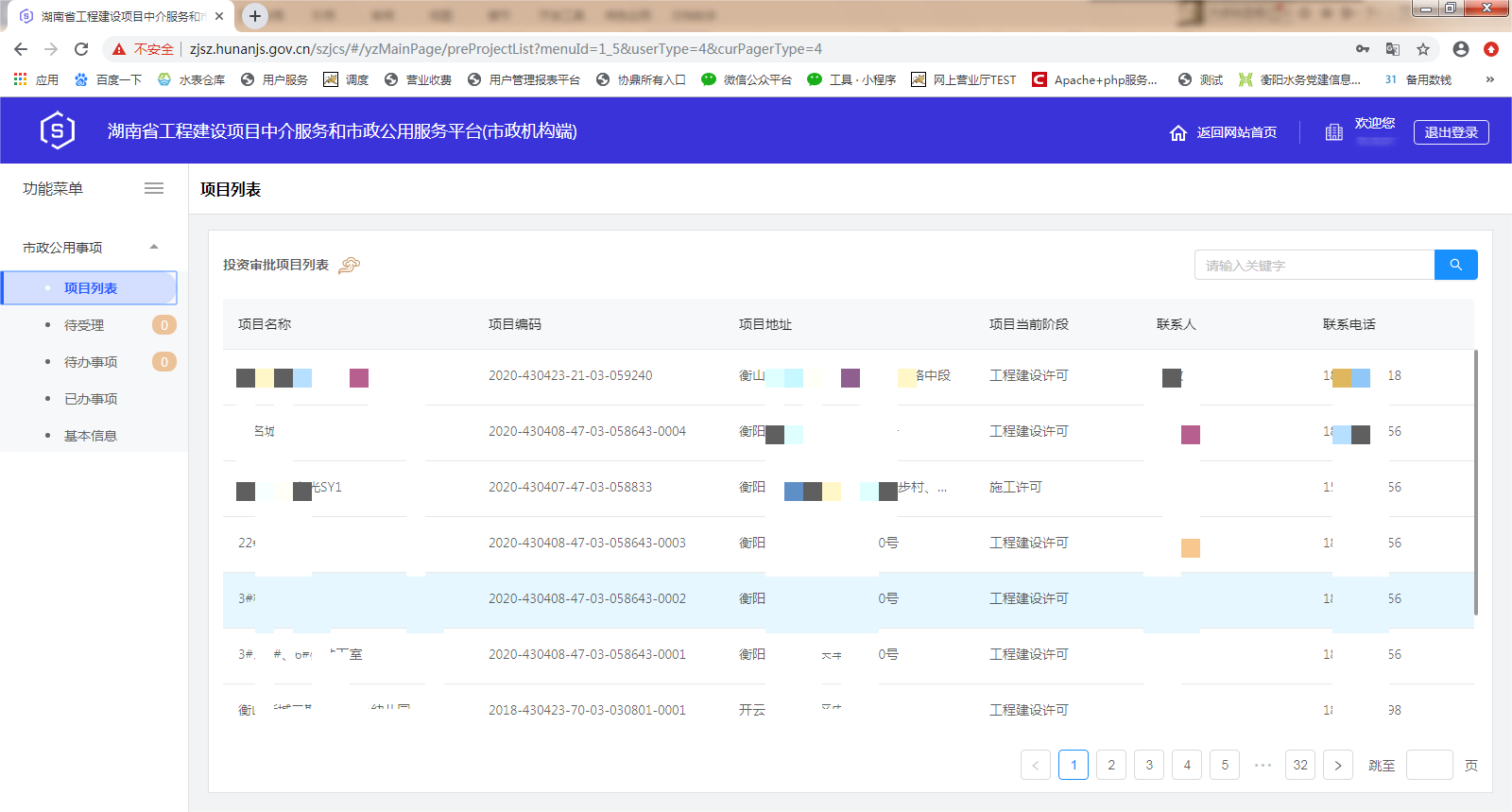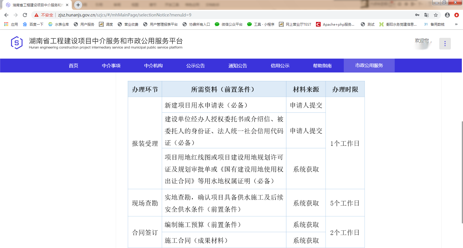 三、湖南省工程建设项目中介服务和市政公用服务平台(市政机构端)操作界面