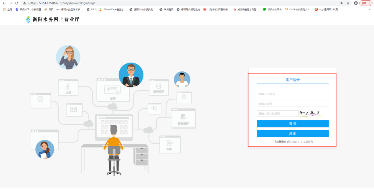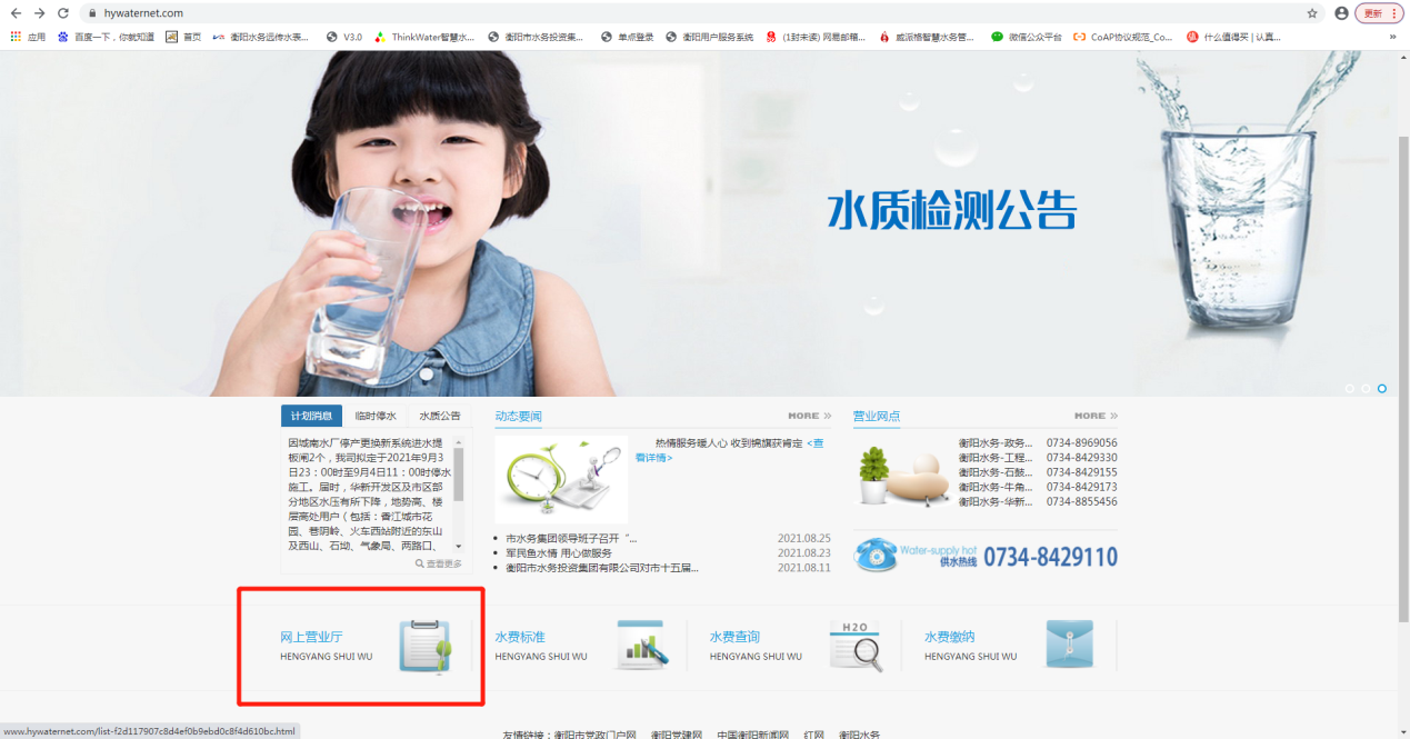 1、进入“衡阳水务”官方网站,点击下图按钮,进入网上营业厅登录界面。