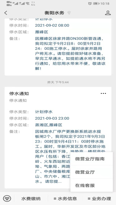 1、关注“衡阳水务”微信公众号,进入微营业厅。